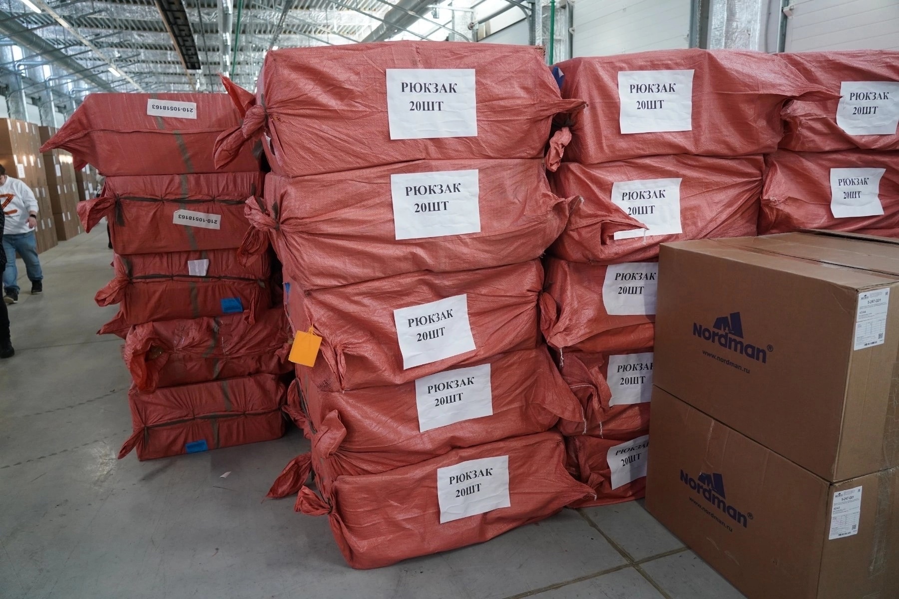Встреча проходит в логистическом центре, где идет сбор и сортировка гуманитарной помощи. Каждый день сюда приходят десятки волонтеров, чтобы принять и подготовить грузы к отправке.