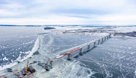 Всего для сборки всех пролетов искусственного сооружения было использовано более 48 тыс. тонн металла. В настоящее время ведется подготовка к надвижке заключительных пристыкованных двух пролетных строений.