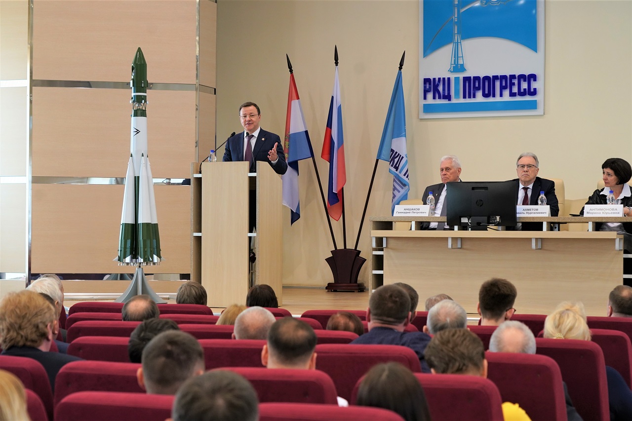 В День космонавтики, 12 апреля, Губернатор Самарской области Дмитрий Азаров принял участие в торжественном заседании научно-технического совета АО «РКЦ «Прогресс», во время которого руководство,
