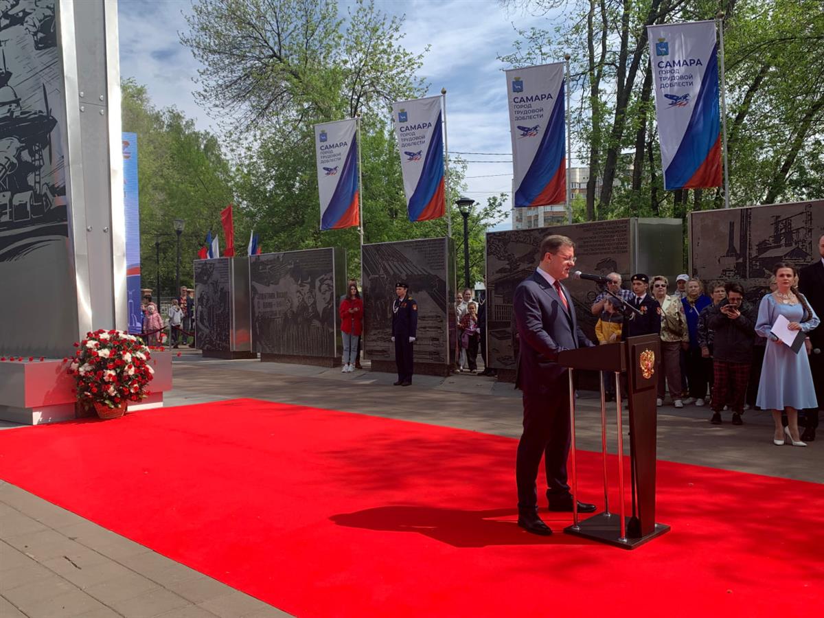 Дмитрий Азаров отметил, что сегодня жители Самарской области воздают дань уважения и признательности землякам, совершившим трудовой подвиг в годы Великой Отечественной войны: "Здесь, в запасной столице, ковалась усилиями сотен тысяч тружеников Победа. Они делали все, чтобы поставить фронту вооружение, боеприпасы, технику, продовольствие. Работая на пределе человеческих сил, куйбышевцы совершили невозможное. За годы войны заводы города дали фронту около 36 тыс. боевых самолетов, 70 тыс. минометов, миллионы подшипников, множество корпусов мин, деталей для легендарных "Катюш", напряженно работали швейные обувные фабрики, пищевые и транспортные предприятия, труженики села".