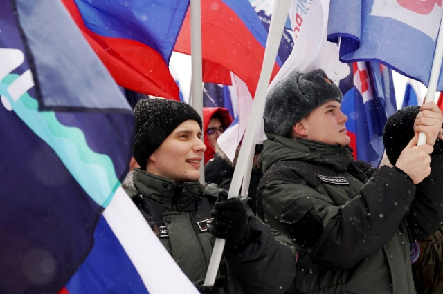 Выступая на митинге-концерте в «Лужниках», Глава государства сказал: «Сегодня при защите наших интересов, людей, культуры, языка, территории весь народ является защитником Отечества. Когда мы вместе, нам нет равных. За единство российского народа!»