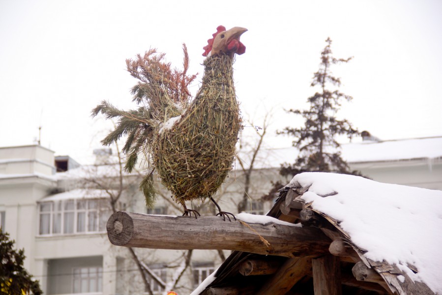 Изюминкой праздника стало «Деревенское подворье» - лабиринт из настоящего сена, из него же скульптуры в виде домашнего скота, а также телега и печка.