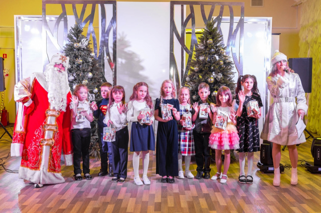 На праздничном мероприятии Дед Мороз и Снегурочка вместе помощниками Снеговиками поздравили ребят с наступающим Новым годом и вручили им дипломы и подарки за конкурс. Финалисты получили сладкие подарки и сертификаты в книжный магазин.