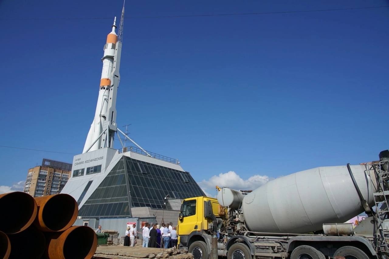 На сегодняшний день на объекте идут активные строительно-монтажные работы. Завершена работа устройству ограждения котлована тонкостенной подпорной стеной из 276 железобетонных свай глубиной от 14 до 20 м. Она необходима для безопасного ведения строительства и эксплуатации существующего здания музея и ракеты-носителя «Союз». В завершающей стадии находятся земляные работы и работы по укреплению котлована металлоконструкциями. Строительная готовность объекта, как сообщил Максим Харитонов, на сегодняшний день составляет 12%. До конца текущего года необходимо возвести монолитные конструкции двух подземных цокольных этажей. В соответствии с соглашением с Министерством культуры РФ строительная готовность на конец года должна составить около 30%.