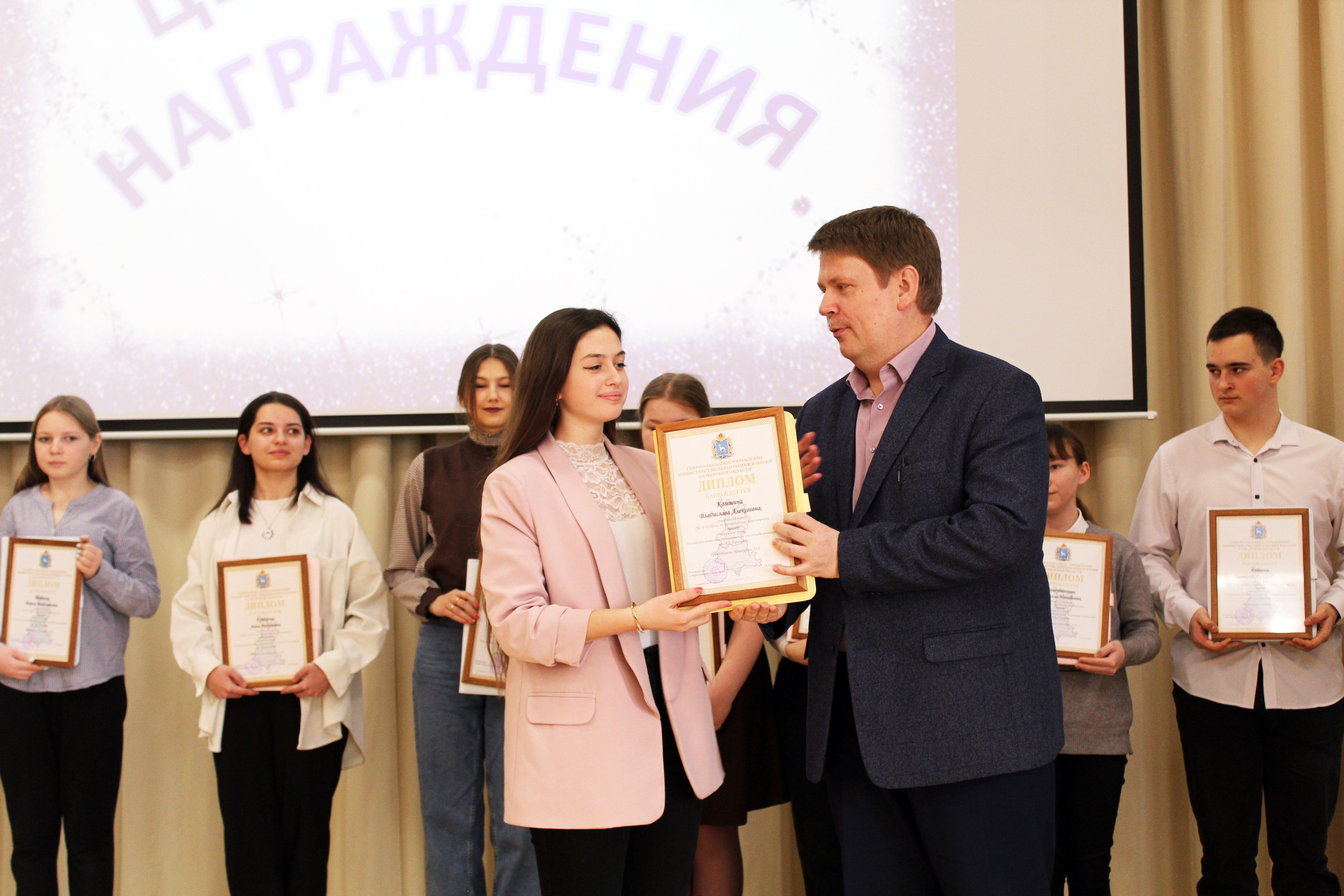 Девять старшеклассников: Юдицкая Екатерина (ГБОУ СОШ «ОЦ» им. Е.М. Зеленова пгт Новосемейкино), Кузнецова Диана, Точилина Виктория (ГБОУ СОШ пгт Мирный), Гуторова Анна, Комшина Владислава, Наумова Арина, Плахина Виктория (ГБОУ СОШ пгт Волжский), Морозова Мария ГБОУ СОШ с. Хилково), Ахметзянова Анастасия (ГБОУ СОШ им. Е.А. Кирюшина с. Большая Раковка), вошедших в число победителей и призеров окружного этапа конкурса, были награждены дипломами Северо-Западного управления и памятными подарками от Красноярской организации профсоюза работников народного образования.