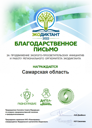 В Самарской области Всероссийский экологический диктант организует министерство образования и науки Самарской области, оператором выступает ГБОУ ДО СО «Самарский областной детский эколого-биологический центр»