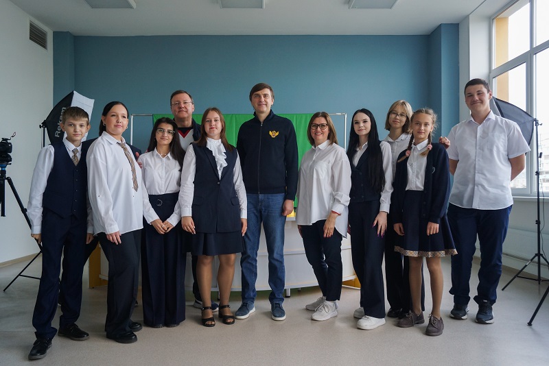 Сергей Кравцов также пообщался с учениками школы в Центре детских инициатив. Дети представили проект, который подготовили к Дню воссоединения новых регионов с Россией. Ученики старших классов рассказывают младшеклассникам об этом празднике.