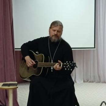По просьбам ребят, батюшка также исполнил несколько песен из своей юности: знаменитый хит Виктора Цоя «Группа крови», «Город золотой», «Матушка Русь» и песню собственного сочинения под названием «Пустые хлопоты».