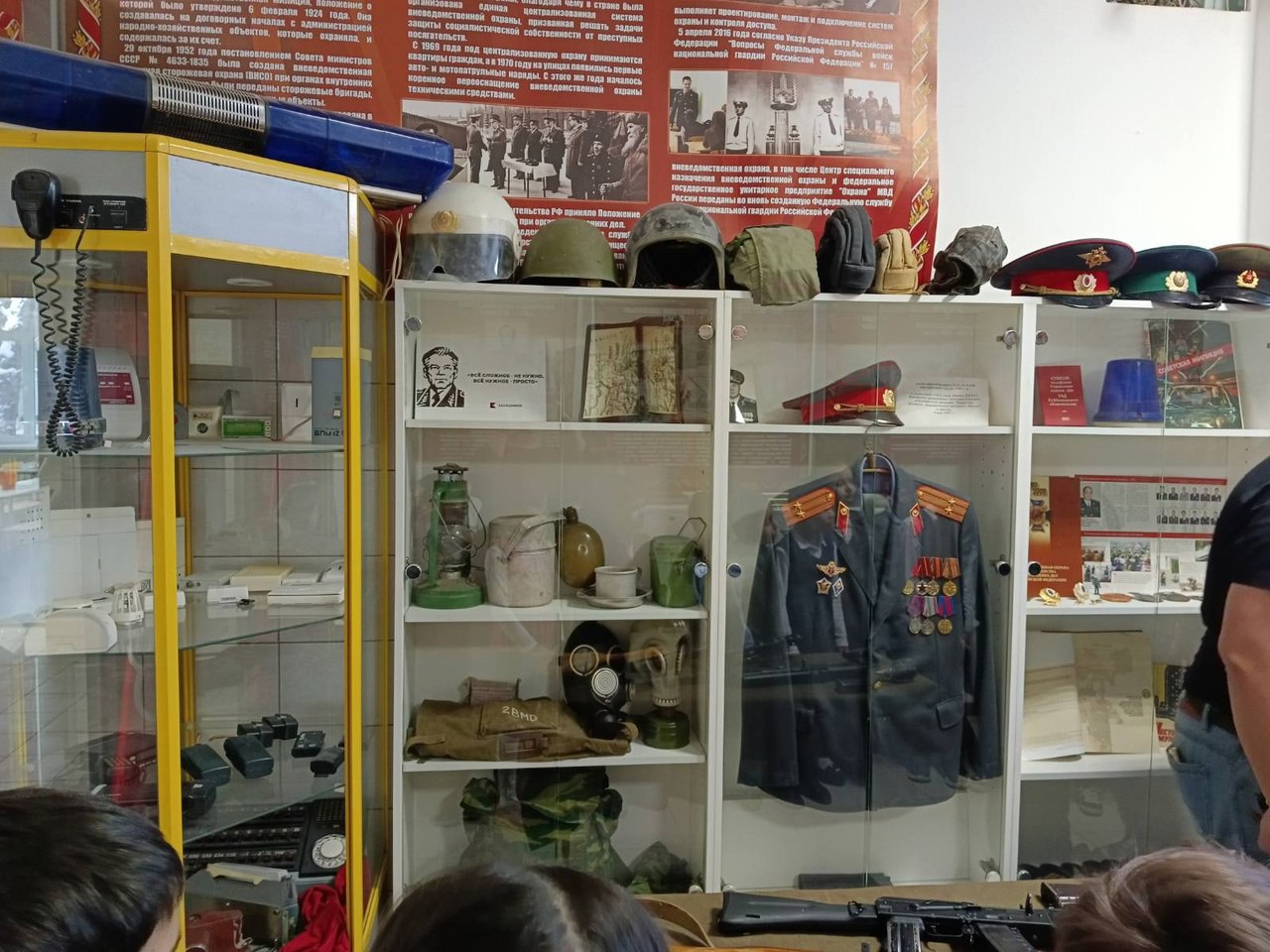 В общеобразовательном учреждении собраны экспонаты, рассказывающие об истории вневедомственной охраны.