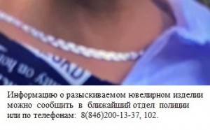 В связи с тем, что ювелирные изделия, со слов работников ломбарда, реализованы неустановленным гражданам, оперуполномоченные уголовного розыска отдела полиции по Промышленному району Управления МВД России по г. Самаре продолжают мероприятия по розыску похищенных украшений: цепочки и браслета из металла белого цвета плетением «коса», золотого кольца весом 2 гр. со вставкой из белого золота и камушка.