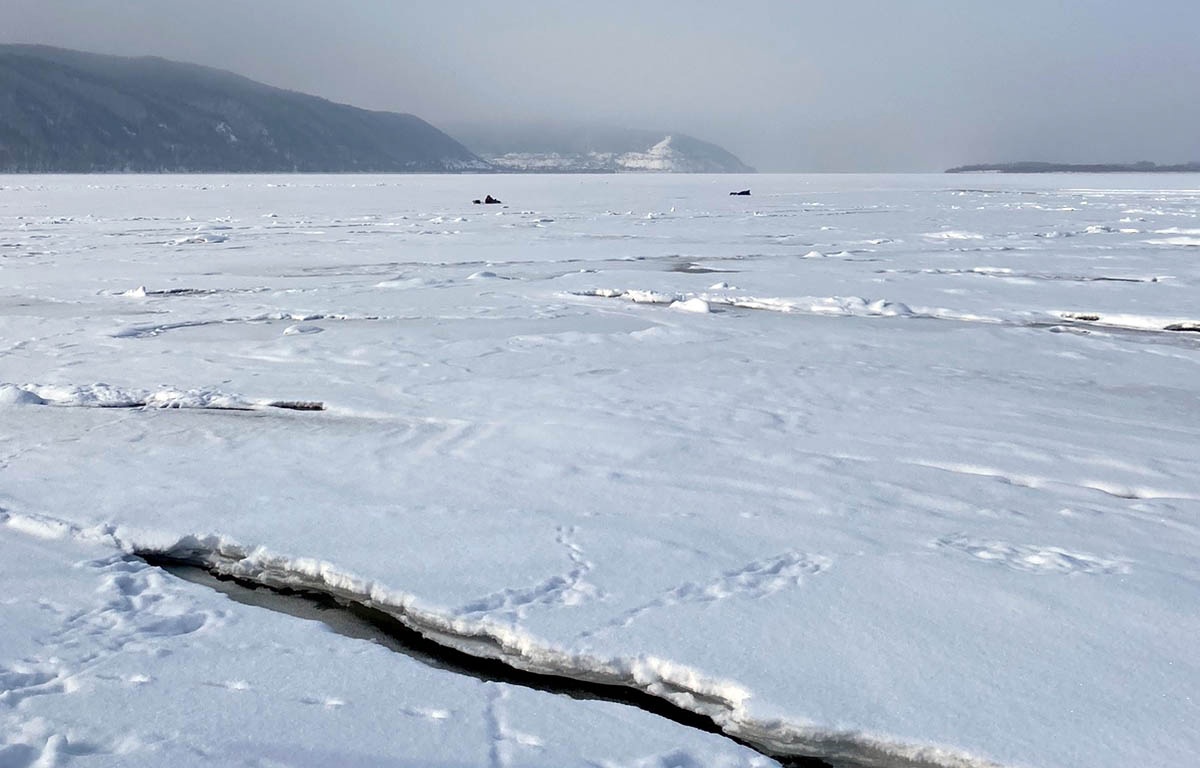 По тонкому льду. Под Самарой снегоход провалился в промоину