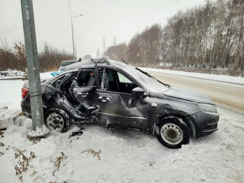 Водитель, мужчина 2001 года рождения, управляя автомобилем ЛАДА 219010, двигался по автодороге со стороны г. Тольятти в сторону с. Хрящевка. В пути следования на 5 км, в условиях снегопада, не справился с рулевым управлением, нарушил правила расположения на проезжей части, допустил выезд на левую по ходу движения обочину с последующим наездом на препятствие — опору освещения.