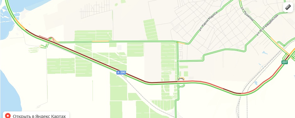 "Маршрут через Крымский мост Краснодарский край - Республика Крым по состоянию на 20:00 (мск) пробка 7 км, время ожидания до 4,5 часов.