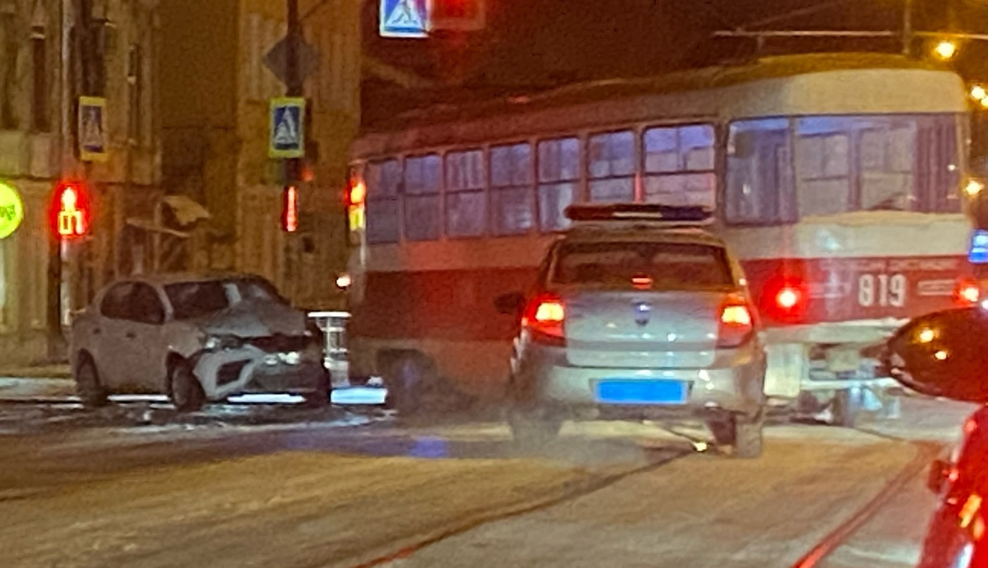 В Самаре на перекрёстке ул. Фрунзе и Пионерской трамвай протаранил легковушку