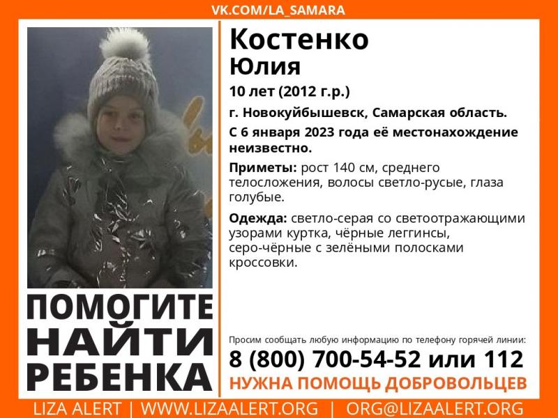 Сотрудники полиции и добровольцы разыскивают 10-летнюю Юлию К. Девочка ушла из дома в Новокуйбышевске вечером 6 января.
