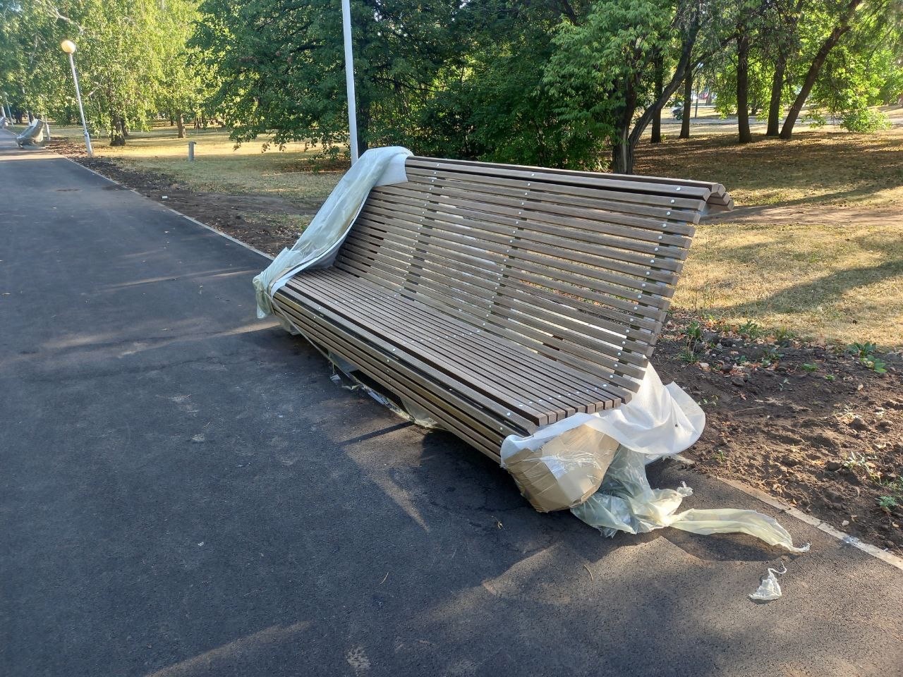 Завершены основные работы по обновлению Парка Победы в Тольятти. 17 августа здесь установили новые скамейки.