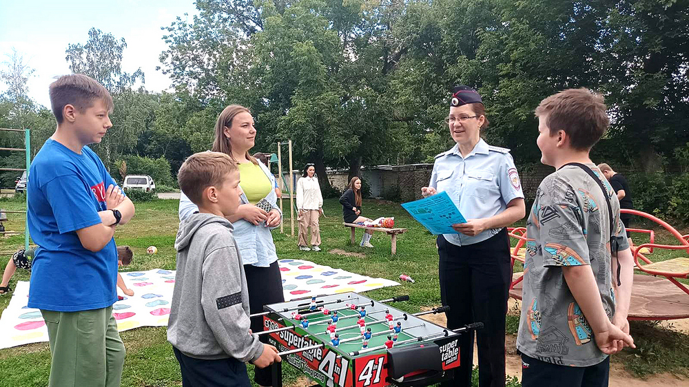 Полицейские и волонтеры в рамках акции «Каникулы с общественным советом» проводят профилактические мероприятия с детьми и родителями по разъяснению правил дорожного движения: в летний период местом для таких бесед становятся дворовые территории. Именно здесь, среди жилых массивов, в свободное время резвится ребятня.