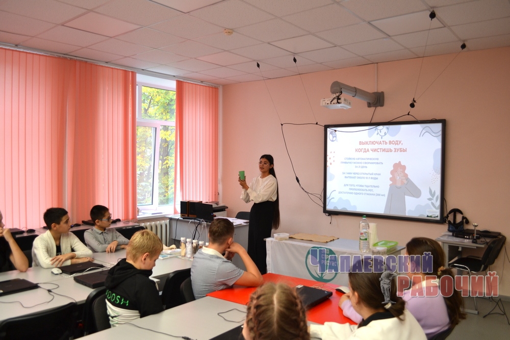— Поднимите руки те, кто выключает воду во время чистки зубов, — обратилась к ребятам сотрудник компании. — Представляете, что за одну минуту из нашего крана вытекает 10 литров воды? Для наглядности я продемонстрирую двухлитровую бутылку. Сколько таких нужно, чтобы уместить потраченную впустую жидкость? А она течет все время, пока мы умываемся — 3 минуты или 5.