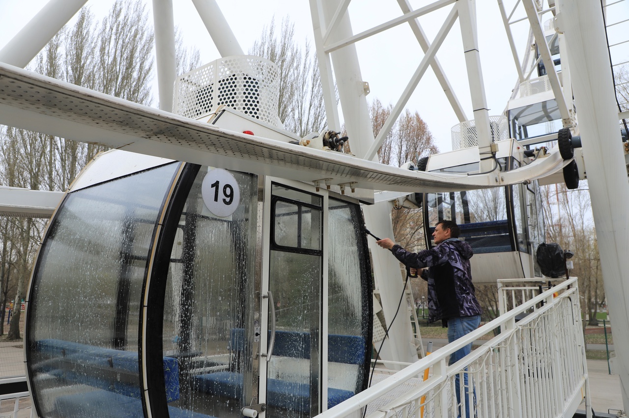 Круг за кругом: в рамках месячника по благоустройству отмывают колесо обозрения и проводят другие парковые работы перед стартом нового сезона