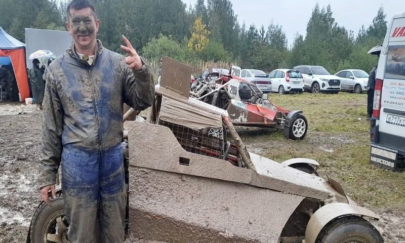 Тольяттинский автогонщик Сергей Буркалов уже к концу первого круга первого заезда, опередив четырех соперников, закрепился на второй позиции, удержав ее до финиша. Старт во втором заезде с первого ряда давал Сергею возможность побороться за первое место в гонке, однако сразу вырваться вперед не удалось. Попытки атаковать успеха не принесли и к четвертому кругу (в заездах было по пять кругов) нашему пилоту пришлось снять забитые грязью очки, чтобы хоть что-то видеть. Так, с коричневым от Златоустовской грязи лицом Сергей по итогу двух основных заездов получил второе место в гонке.