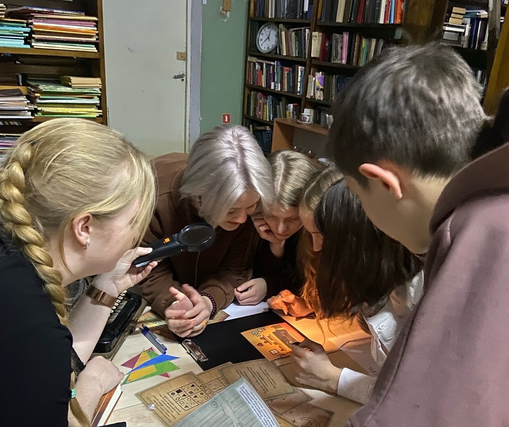 Участники квеста, вспомнив знаменитых детективов из книг, сами превратились в сыщиков. В книгохранилище были спрятаны зашифрованные игровые задания и подсказки для их выполнения. Антураж, звуковое сопровождение — все способствовало объединению ребят в решении упражнений на логику. Такие интерактивные игры носят просветительский и развивающий характер, формируют читательскую грамотность и умение работать в команде.