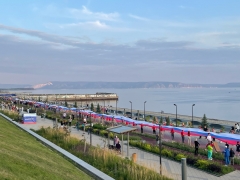 Тольяттинцы развернули российский триколор на новой набережной Автозаводского района