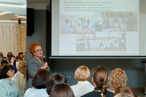 Главный врач Елена Маркелова совместно с организатором и первым руководителем учреждения, заслуженным врачом РФ Маргаритой Слугиной представили доклад о создании и основных вехах в истории лечебно-реабилитационного центра, актуальных направлениях его работы и вкладе специалистов в развитие детской медицинской реабилитации в России.