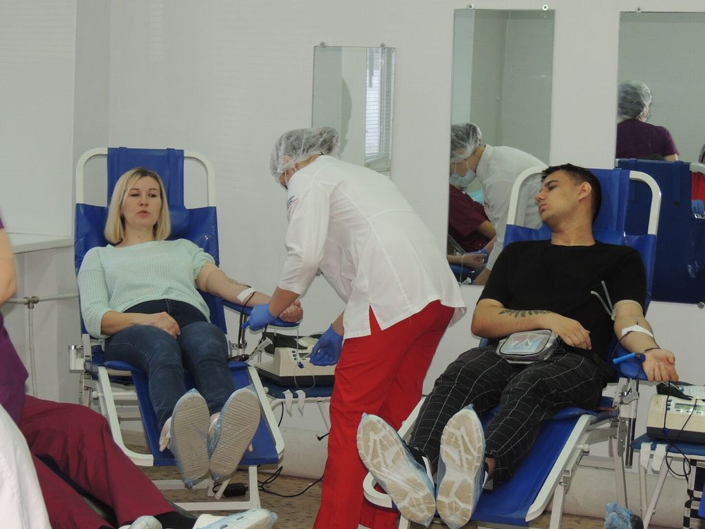 В первых рядах на сдачу крови – медицинские работники и студенты медколледжа.