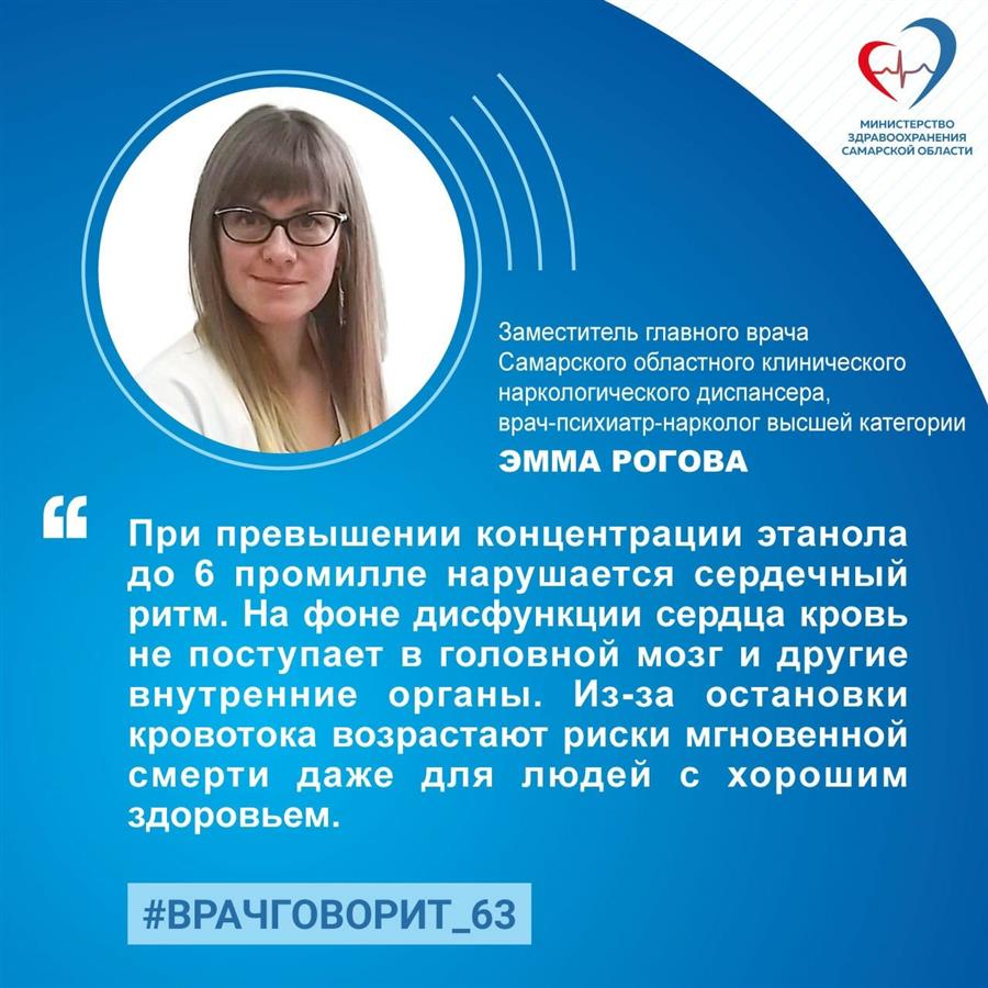 Об особенностях метаболизма этанола рассказала заместитель главного врача по медицинской части Самарского областного клинического наркологического диспансера, врач-психиатр-нарколог высшей категории Эмма Рогова.