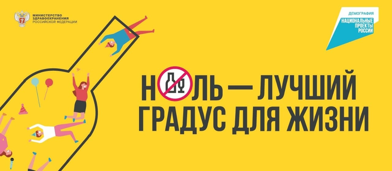 В рамках национального проекта «Демография» реализуется кампания «Ноль — лучший градус для жизни». Она направлена на профилактику алкоголь-ассоциированных заболеваний — последствий регулярного употребления алкоголя, которые наносят тяжелейший вред здоровью и отражаются на всех аспектах жизни человека.