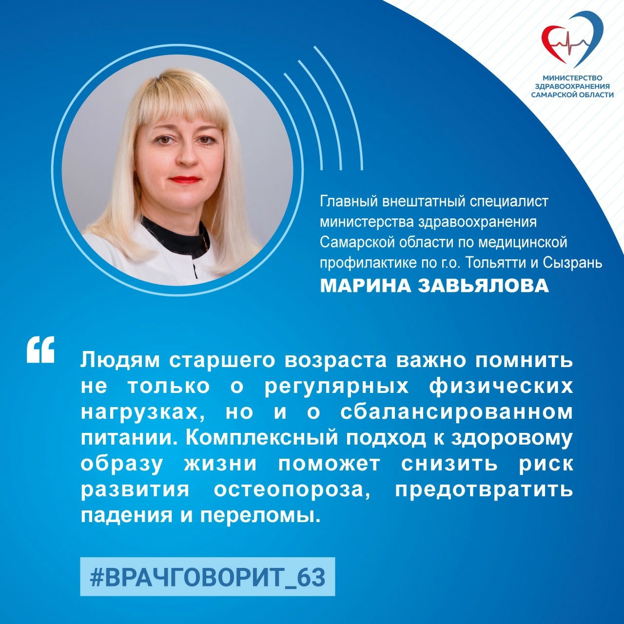 Фото: министерство здравоохранения Самарской области Упражнения на равновесие, богатый кальцием рацион, комплексный подход к сбережению здоровья: