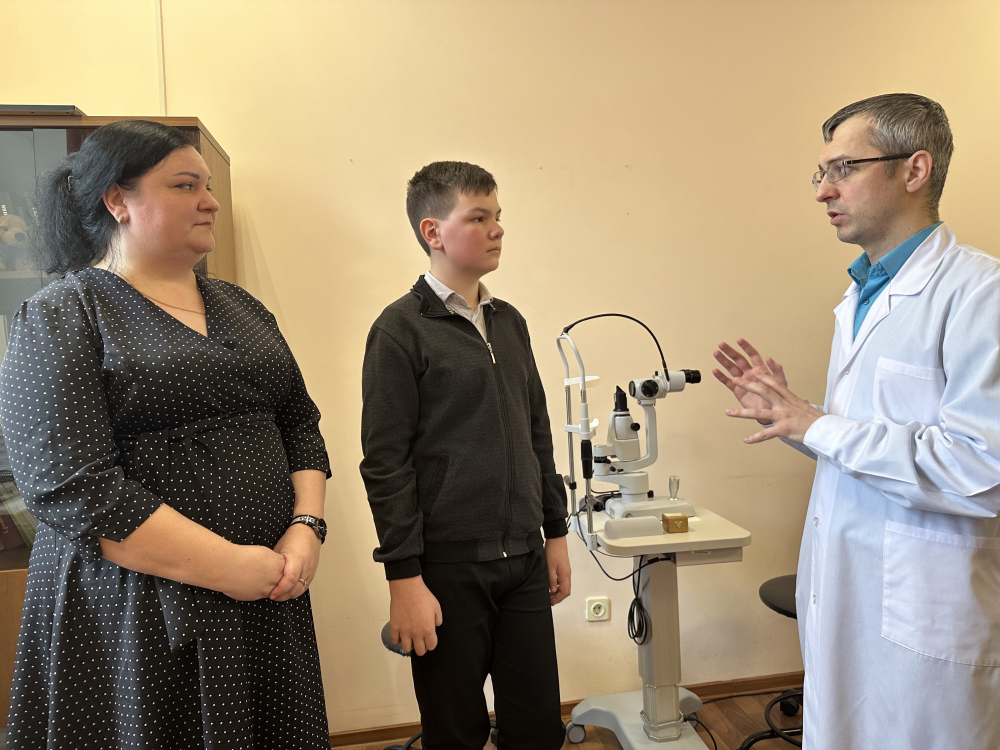 «Когда ребенку был установлен диагноз, его зрение было удовлетворительное, были назначены очки. В школьный период зрительная нагрузка увеличилась, пациент начал жаловаться, что плохо видит вдали. Стремительно прогрессирующие симптомы стали показаниями для хирургического лечения», - рассказал заведующий детского офтальмологического микрохирургического отделения больницы им. Т.И.Ерошевского Андрей Синеок.