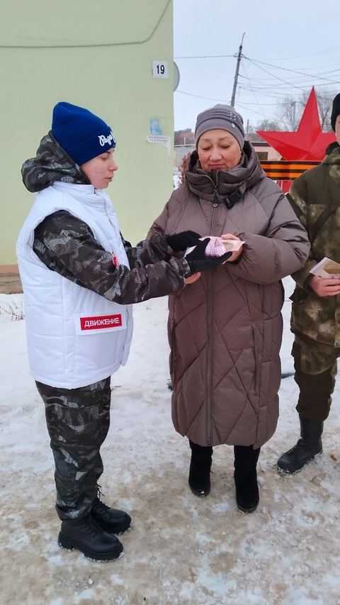 27 января в п.г.т. Безенчук юнармейцы, воспитанники Волжского казачьего общества, волонтеры Победы, волонтеры-медики, Первые, раздали жителям района «Блокадный хлеб»