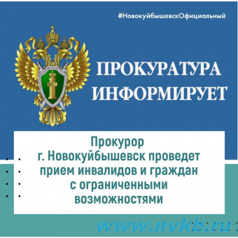 21 февраля в 10:00 прокурор г. Новокуйбышевск Андрей Тукмаков проведет прием инвалидов и граждан с ограниченными возможностями.