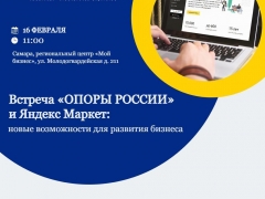16 февраля 2023 года в региональном центре «Мой бизнес» пройдет открытая встреча членов реготделения ассоциации предпринимателей «ОПОРА РОССИИ» и территориального менеджера компании Яндекс Маркет по Поволжью Владимира Шабалина.