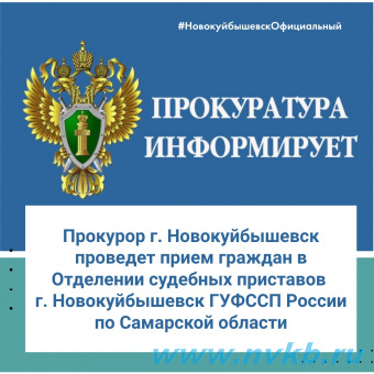 14 марта 2023 года в 10:00 прокурор г.о. Новокуйбышевск Андрей Тукмаков проведет прием граждан в Отделении судебных приставов г.о. Новокуйбышевск ГУФССП России по Самарской области.