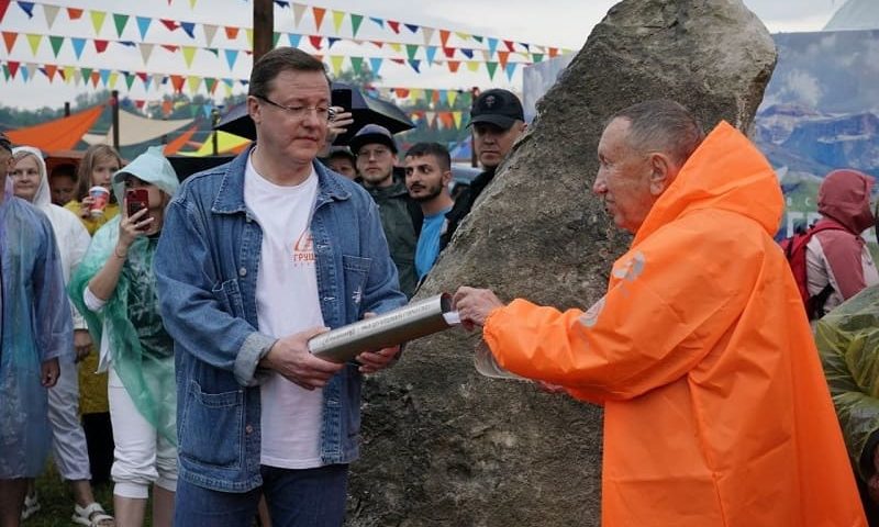 На 50-м юбилейном Грушинском фестивале была заложена капсула времени для будущих поколений участников. Для этого на поляну доставили камень с места проведения первого фестиваля — из урочища Каменная Чаша в Жигулях. Вместе с земляками, гостями фестиваля, известными бардами в церемонии принял участие губернатор Дмитрий Азаров. «Надеюсь, что через 10 лет мы встретимся в том же составе и, конечно, продолжим традиции нашего фестиваля, — подчеркнул глава региона. — Мы бережно сохраняем их. И я рад, что появляются новые — как сегодняшняя. Мы предпринимаем дополнительные усилия, чтобы поляна стала более комфортной. Движется время, и есть запрос на повышение уровня комфорта и гостеприимства».