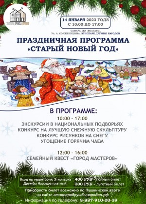 14 января 2023 года с 10.00 до 17.00 на территории Этнопарка дружбы народов состоится праздничная программа «Старый новый год».