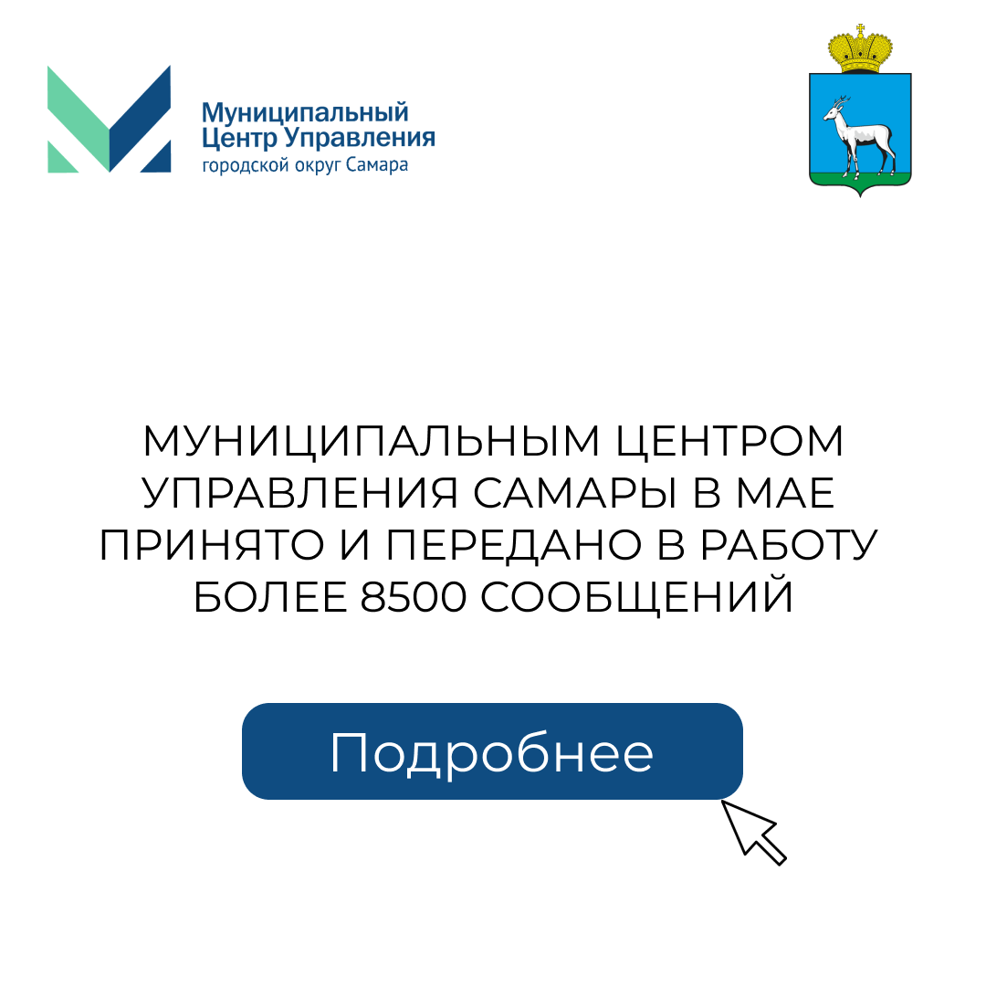В мае 2023 года специалисты Муниципального центра управления Самары приняли и направили в работу более 8500 сообщений горожан.