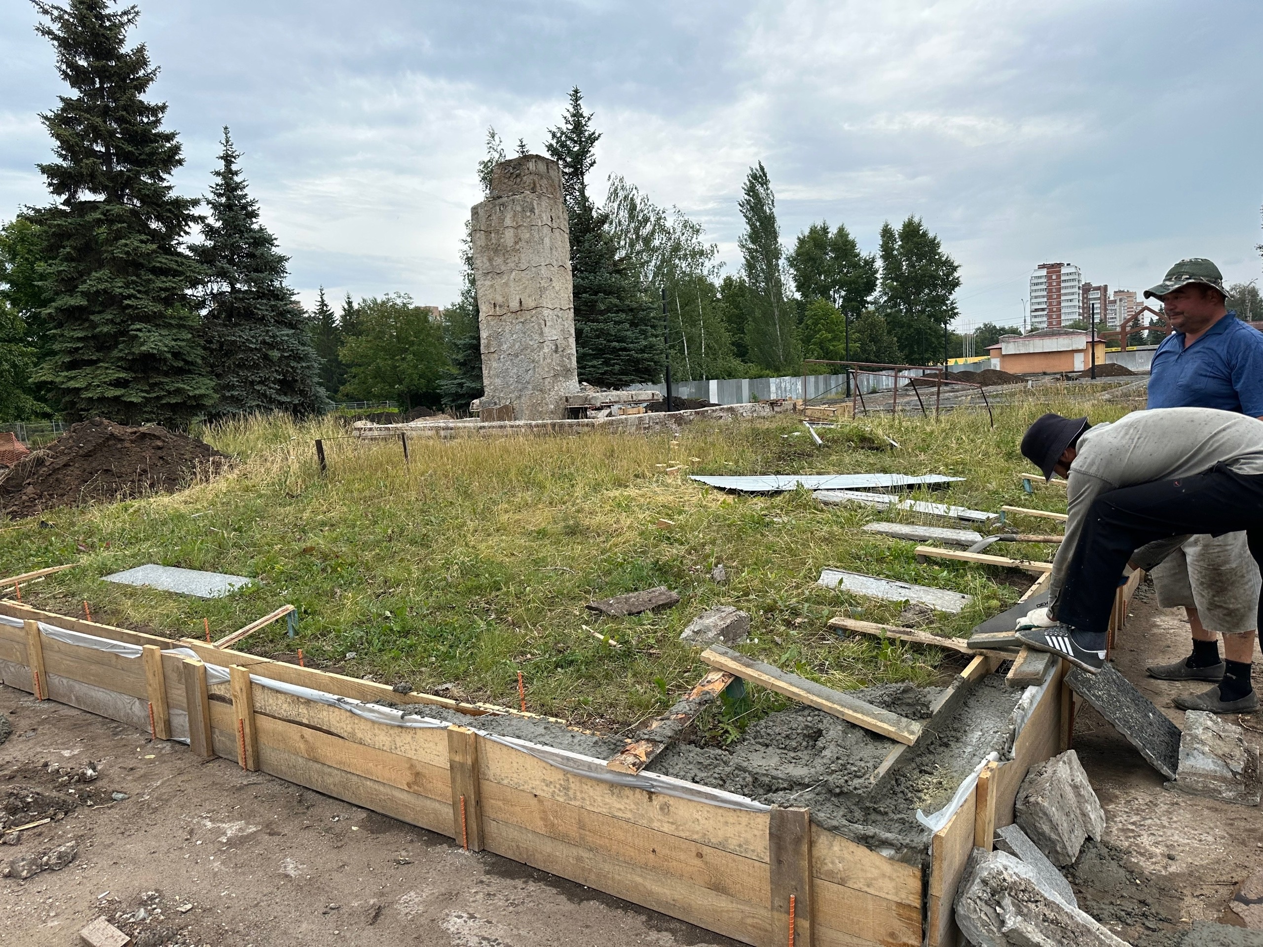В парке Центрального района Тольятти идет реконструкция главной аллеи, где установлен памятник В. И. Ленину.