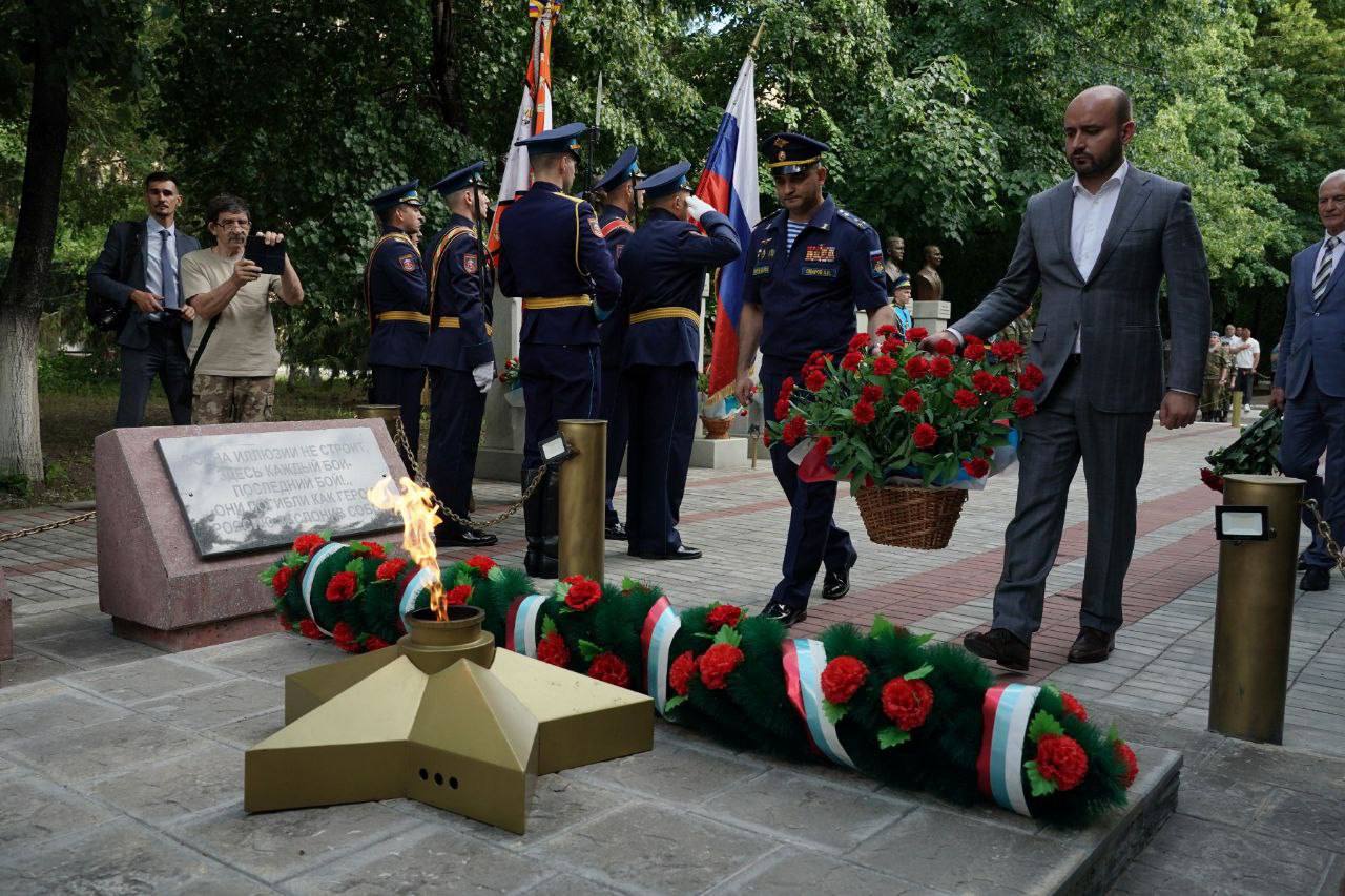 Участники церемонии почтили память погибших минутой молчания и возложили цветы к мемориалу.