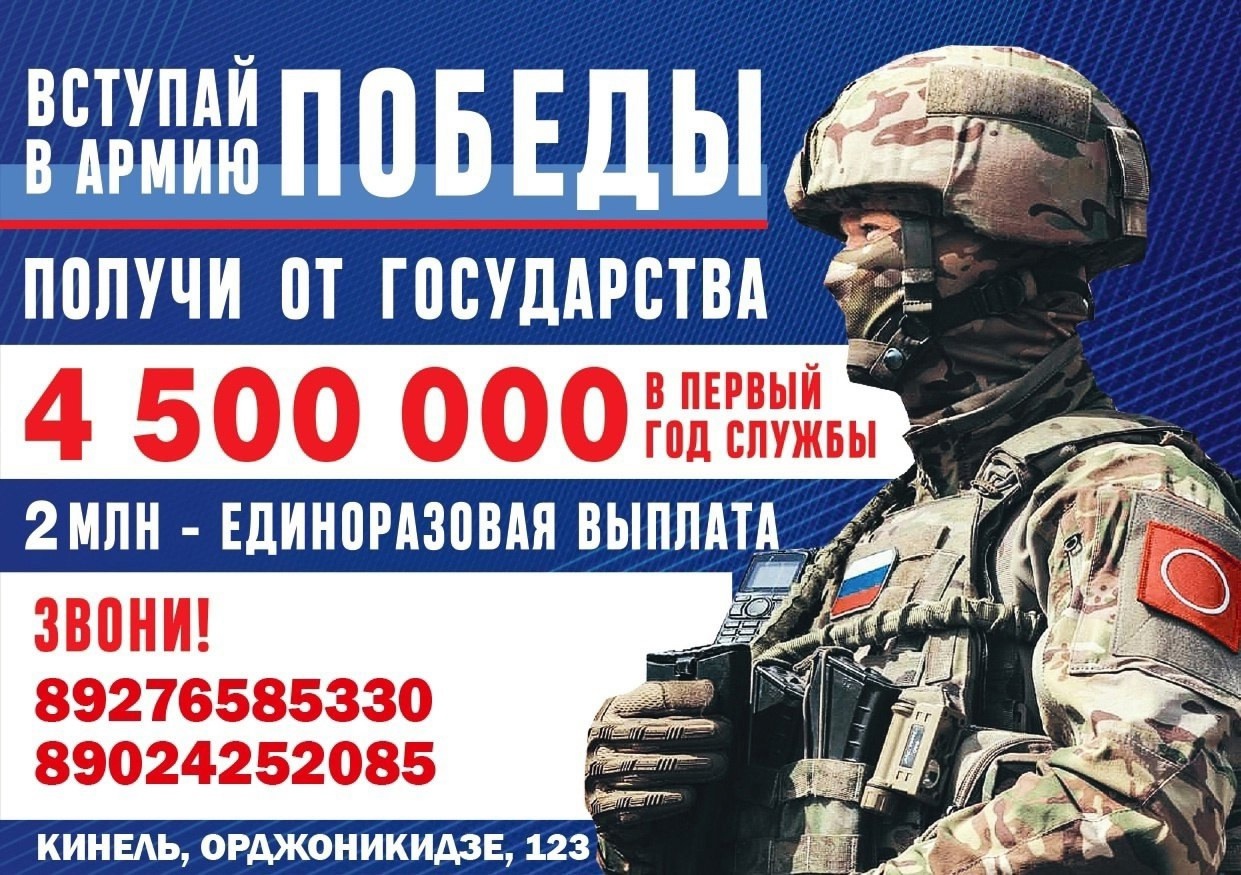 По вопросам поступления на военную службу по контракту в Вооружённые силы Российской Федерации обращаться в военный комиссариат г. Кинель и Кинельского района по адресу: г. Кинель, ул. Орджоникидзе, 123.