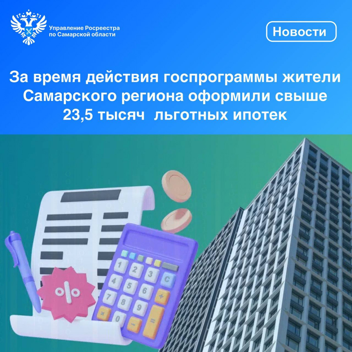За весь период действия программы на территории Самарской области было зарегистрировано 23 587 ипотечных сделок по льготной программе.