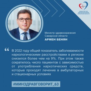 «В 2022 году общий показатель заболеваемости наркологическими расстройствами в регионе снизился более чем на 9%. При этом также сократилось число пациентов с зависимостью от употребления наркотических средств, которые проходят лечение в амбулаторных и стационарных условиях, — сообщил министр здравоохранения Самарской области Армен Бенян. — Обеспечение преемственности в лечении и реабилитации, совершенствование диспансерного наблюдения за состоянием здоровья наркозависимых формируют устойчивую тенденцию к снижению уровня заболеваемости».